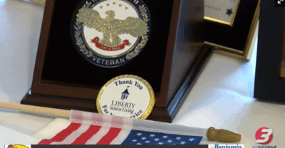 Each veteran received two challenge coins, one from the World War II Museum and one from Liberty Senior Living.