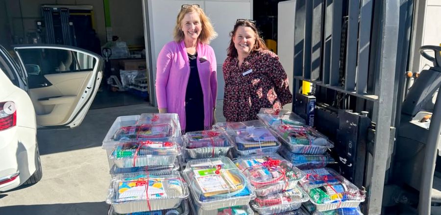 food, toiletries, and cleaning supplies for neighbors. For Heart Health Month, they donated
